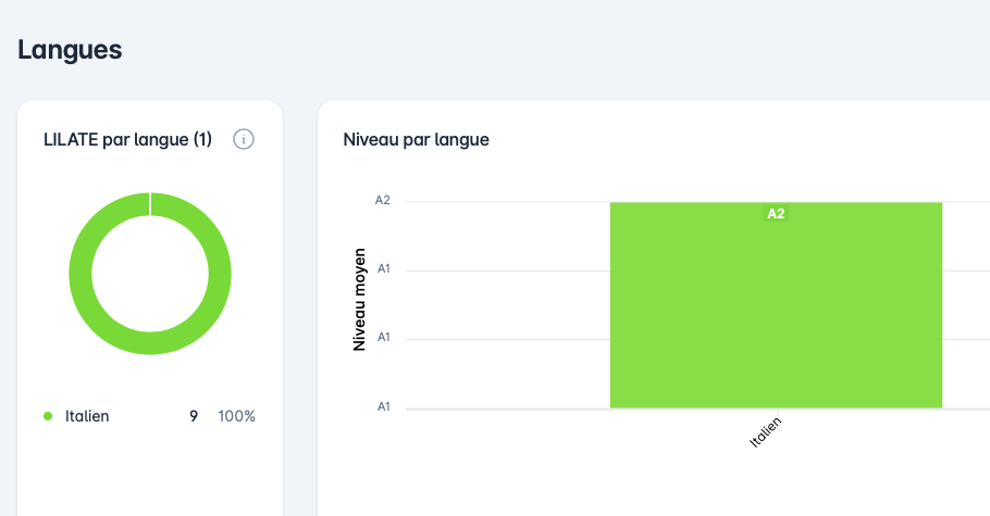 Depuis le début de l'année 2024, 9 apprenants, tous niveaux confondus, ont passé le test LILATE, 3 d'entre eux ont obtenu la certification "apte à travailler en italien avec un niveau minimum de B1.